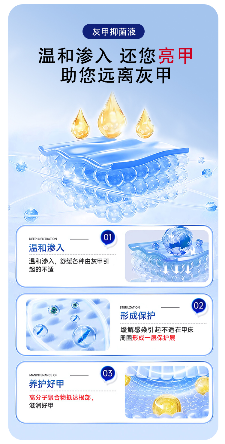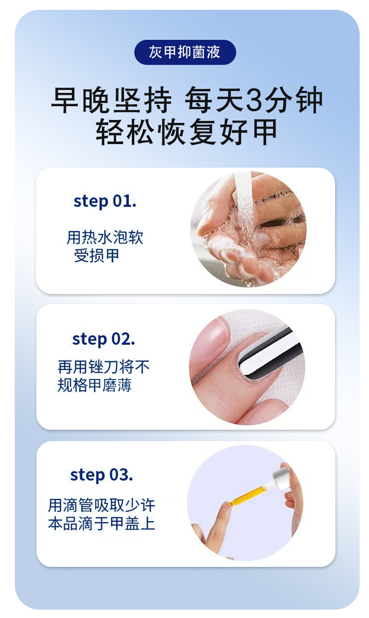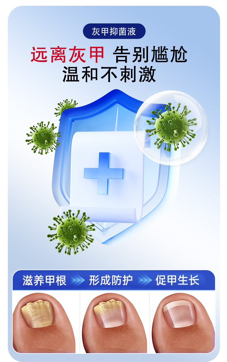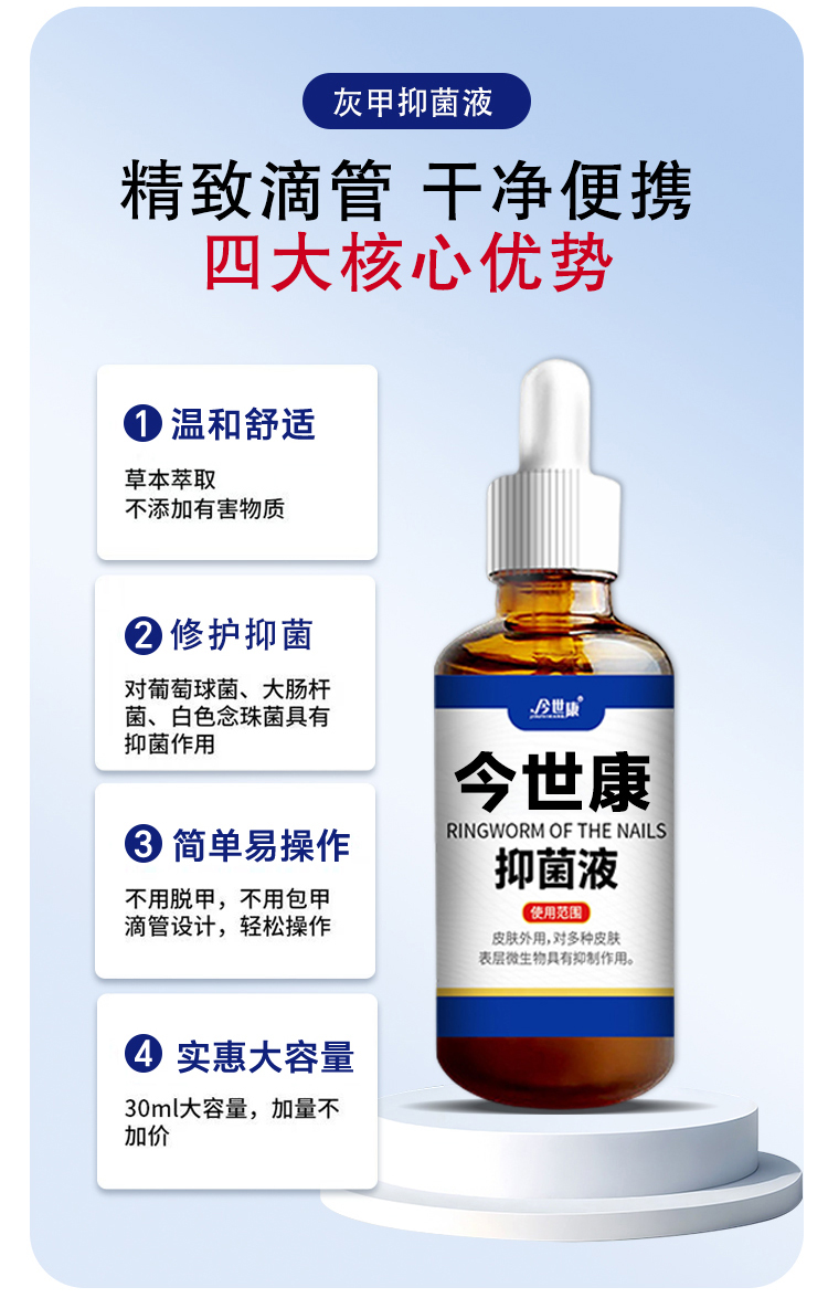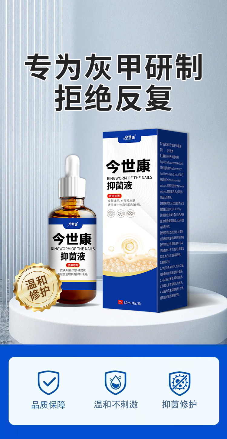 灰趾甲抑菌液,是今世康廠家專為灰趾甲研制,用于腳指甲灰趾甲、指甲萎縮、凹凸不平等指甲問題,給指甲多重呵護(hù),遠(yuǎn)離灰甲,抑菌液生產(chǎn)廠家,支持不同材質(zhì)、規(guī)格、形狀、包裝設(shè)計(jì),滿足多種渠道需求的抑菌液體加工一站式oem貼牌定制服務(wù)。