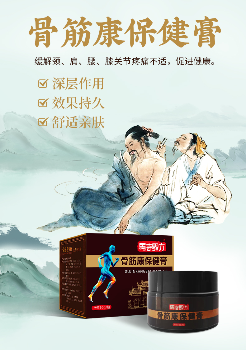 馬寺驗方骨筋康保健膏,用于頸、肩、腰、膝關(guān)節(jié)不適,草本原材濃縮萃取,配比放心,匠心熬制,涂抹方便,油膏質(zhì)地,更易吸收,產(chǎn)品包裝、配方、效果、形狀、均可定制,源頭工廠,資質(zhì)文號、生產(chǎn)備案齊全,生產(chǎn)能力強,出貨周期短,批發(fā)代理,oem貼牌代加工一站服務(wù)。